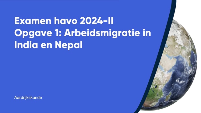 Op deze pagina behandelen we Opgave 1 – Arbeidsmigratie in India en Nepal van het aardrijkskunde havo eindexamen 2024 - tijdvak 2. Deze opgave bestaat uit 5 vragen (vraag 1 t/m 5) en wordt volledig uitgelegd door onze docent Robert, in een begeleidende video met uitleg per vraag.