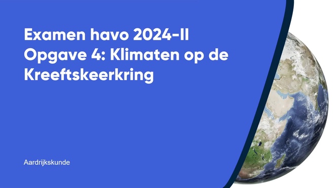 Op deze pagina behandelen we vraag 16 van het centraal examen aardrijkskunde havo 2024 โ tijdvak 2. Deze vraag is onderdeel van Opgave 4 - Klimaten op de Kreeftskeerkring, en is 2 punten waard.