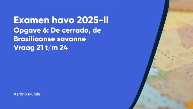 Op deze pagina behandelen we vraag 23 van het centraal examen aardrijkskunde havo 2025 – tijdvak 2. Deze vraag is onderdeel van Opgave 6 - De cerrado, de Braziliaanse savanne, en is 3 punten waard.