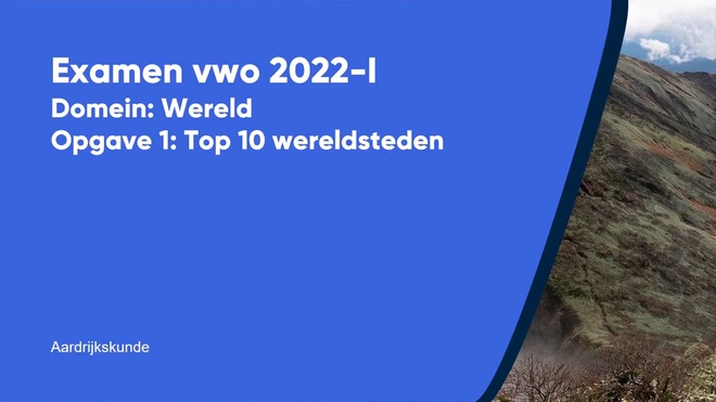 Op deze pagina behandelen we Opgave 1 – Top 10 wereldsteden van het aardrijkskunde vwo eindexamen 2022 - tijdvak 1. Deze opgave bestaat uit 4 vragen (vraag 1 t/m 4) en wordt volledig uitgelegd door onze docent Robert, in een begeleidende video met uitleg per vraag.