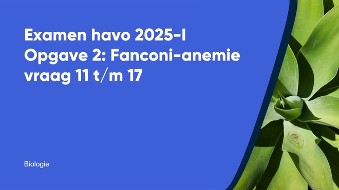 Op deze pagina behandelen we vraag 15 van het centraal examen biologie havo 2025 – tijdvak 1. Deze vraag is onderdeel van Fanconi-anemie, en is 2 punten waard.