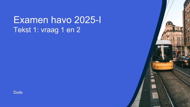 Op deze pagina behandelen we Tekst 1 Stimmt's? van het duits havo eindexamen 2025 - tijdvak 1. Deze opgave bestaat uit 2 vragen (vraag 1 en 2) en wordt volledig uitgelegd door onze docent Sven, in een begeleidende video met uitleg per vraag.