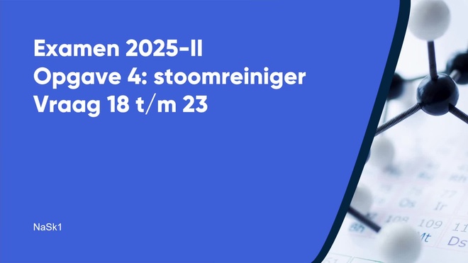 Op deze pagina behandelen we Stoomreiniger van het nask1 vmbo eindexamen 2025 - tijdvak 2. Deze opgave bestaat uit 6 vragen (vraag 18 t/m 23) en wordt volledig uitgelegd door onze docent Lisanne, in een begeleidende video met uitleg per vraag.