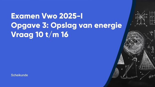 Op deze pagina behandelen we vraag 11 van het centraal examen natuurkunde vwo 2025 – tijdvak 1. Deze vraag is onderdeel van Opslag van energie, en is 4 punten waard.