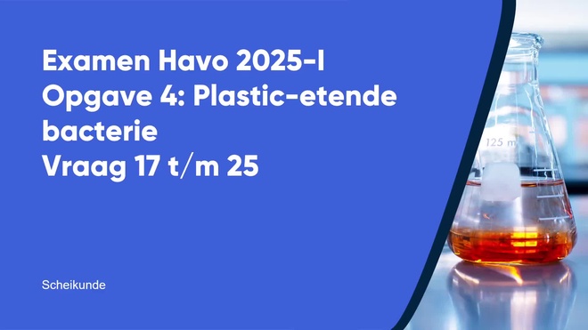 Op deze pagina behandelen we vraag 22 van het centraal examen scheikunde havo 2025 tijdvak 1. Deze vraag is onderdeel van Plastic-etende bacterie, en is 3 punten waard.