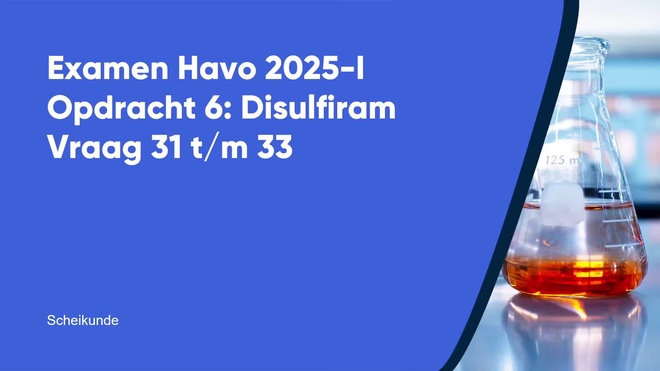 Op deze pagina behandelen we vraag 31 van het centraal examen scheikunde havo 2025 – tijdvak 1. Deze vraag is onderdeel van Disulfiram, en is 2 punten waard.