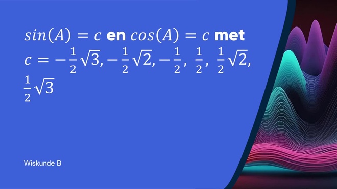 •Je kunt de waardenc=-\frac{1}{2}\sqrt3c=-\frac{1}{2}\sqrt{}c=-\frac{1}{2}c=-\frac{1}{2}c=-\frac{1}{2}c=-\frac{1}{2}c=-\frac{1}{2}c=-\frac{1}{2}c=-\frac{1}{2}\surd,-\frac{1}{2}\sqrt2-\frac{1}{2}\sqrt{s2}-\frac{1}{2}\sqrt{s}-\frac{1}{2}-\frac{1}{2}\surd-\frac{1}{2}\surd2-\frac{1}{2}\surd,,,\frac{1}{2}\sqrt2\frac{1}{2}\sqrt{}\frac{1}{2}\sqrt{s}\frac{1}{2}\frac{1}{2}\surd,\frac{1}{2}\sqrt3\frac{1}{2}\sqrt{}\frac{1}{2}\sqrt2\frac{1}{2}\sqrt{}\frac{1}{2}\sqrt{s}\frac{1}{2}\frac{1}{2}\surdherkennen en gebruiken bij het oplossen van deze vergelijkingen.
